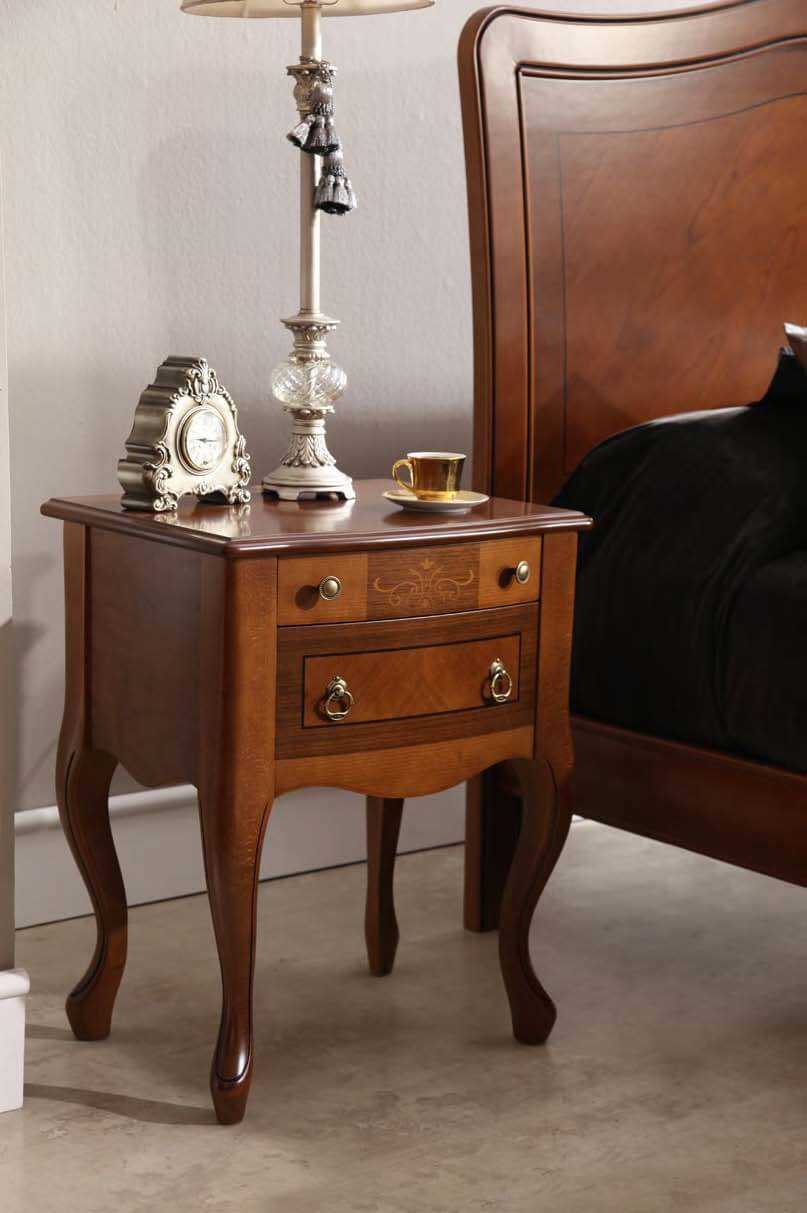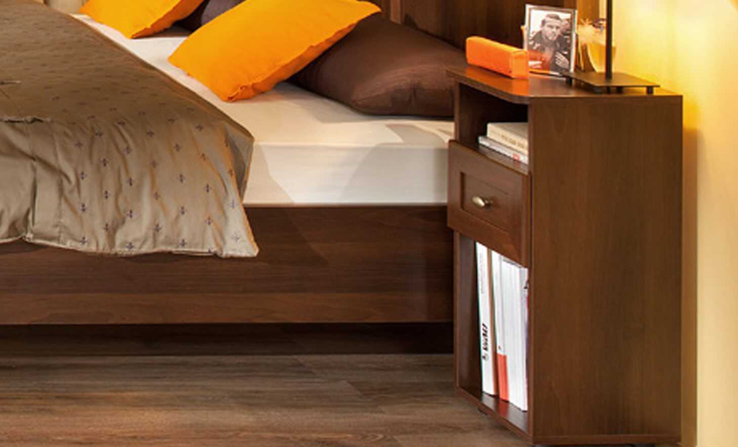 Прикроватная тумбочка в спальню из натуральной древесины выглядит красиво и благородно. Изделие рассчитано на длительный срок эксплуатации, хорошо переносит значительные нагрузки, экологически безопасно. Для того чтобы защитить древесину от негативных воздействий, подчеркнуть природную красоту поверхность вскрывают лаком. Из недостатков дерева можно отметить: большую стоимость и вес.