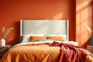 Ярким украшением сдержанного интерьера станет круглый диван красного цвета. Оригинально смотрится сочетание красного корпуса и коричневого матраса. Удобная спинка позволит расслабиться и отдохнуть. Цвет матраса идеально сочетается с коричневыми стенами. Чтобы украсить и отделить визуально место под диван можно использовать возвышение и использовать другое цветовое решение для напольного покрытия.