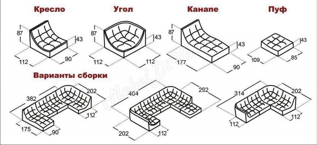 Все эти части легко разбираются и собираются. В комплекте с каждой моделью идет инструкция по сборке. Чтобы собрать новый диван, потребуется выполнить несколько простых действий: