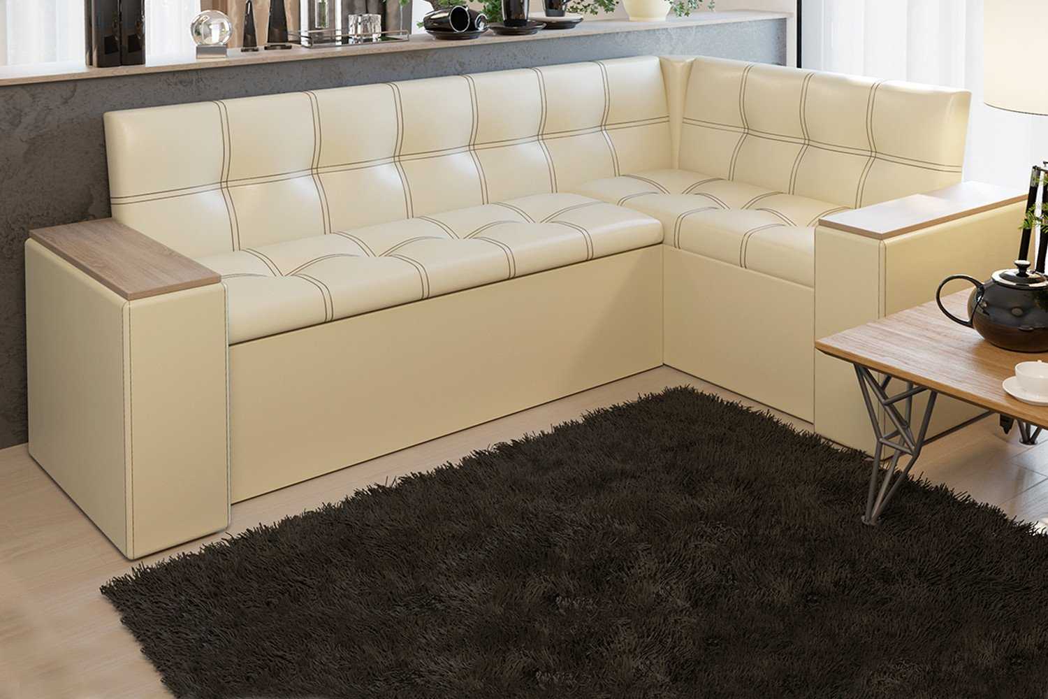 - С местом для хранения. Современные кухонные диванчики оснащены нишами, ящиками для хранения, полочками для хозяйственных мелочей.