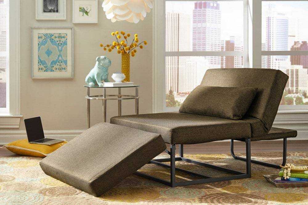Для максимально уютного дизайна гостиной, часто выбирают конструкции-трансформеры, одновременно предназначенные, как для сидения, так и для сна. Оформление в виде кресла-кровати, оборудованного откидной спинкой или выдвижной основой, будет особенно актуально для маленького зала.