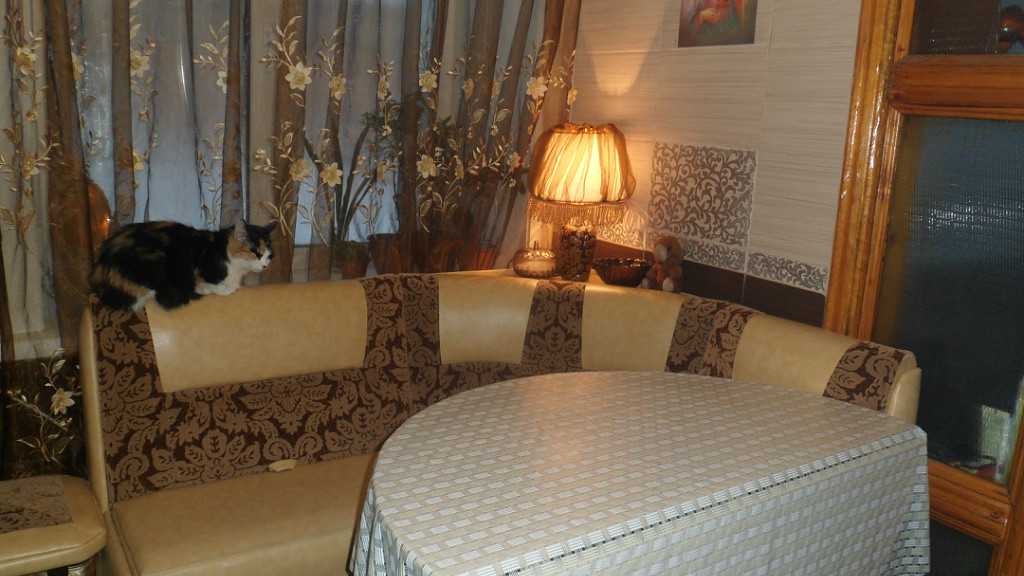 При оформлении уютной обеденной зоны можно присмотреться к мягкой мебели. Производители предлагают модели шириной от 80 см и глубиной от 40 см. Чтобы ими было комфортно пользоваться, лучше выбирать изделия без подлокотников или с одним подлокотником (угловой вариант). На кухне квадратной формы можно уютно разместить небольшой угловой диванчик.