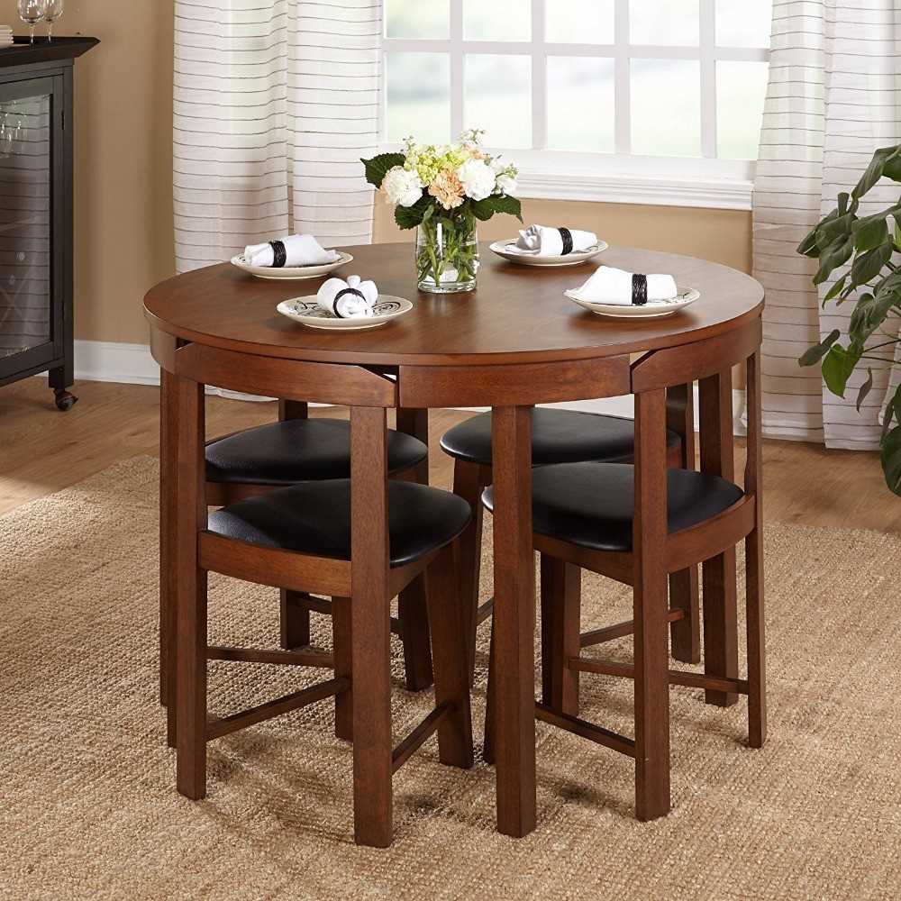 Наиболее компактный вариант – это маленький стол квадратной формы: для ежедневных обедов семьи из 4 человек хватит квадрата размерами 90 х 90 см.