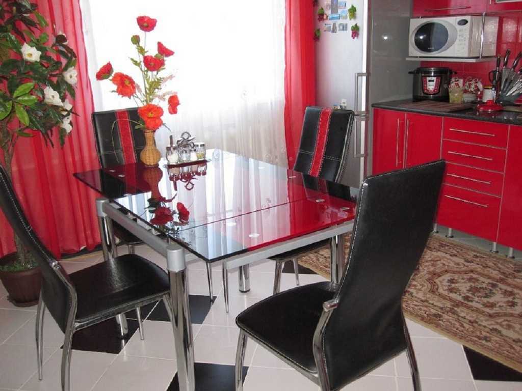Важная аксиома: кухонный стол должен гармонично смотреться с установленным гарнитуром и интерьером в целом. Если он выделяется из обстановки яркими красками, то такие же должны присутствовать в декоре.