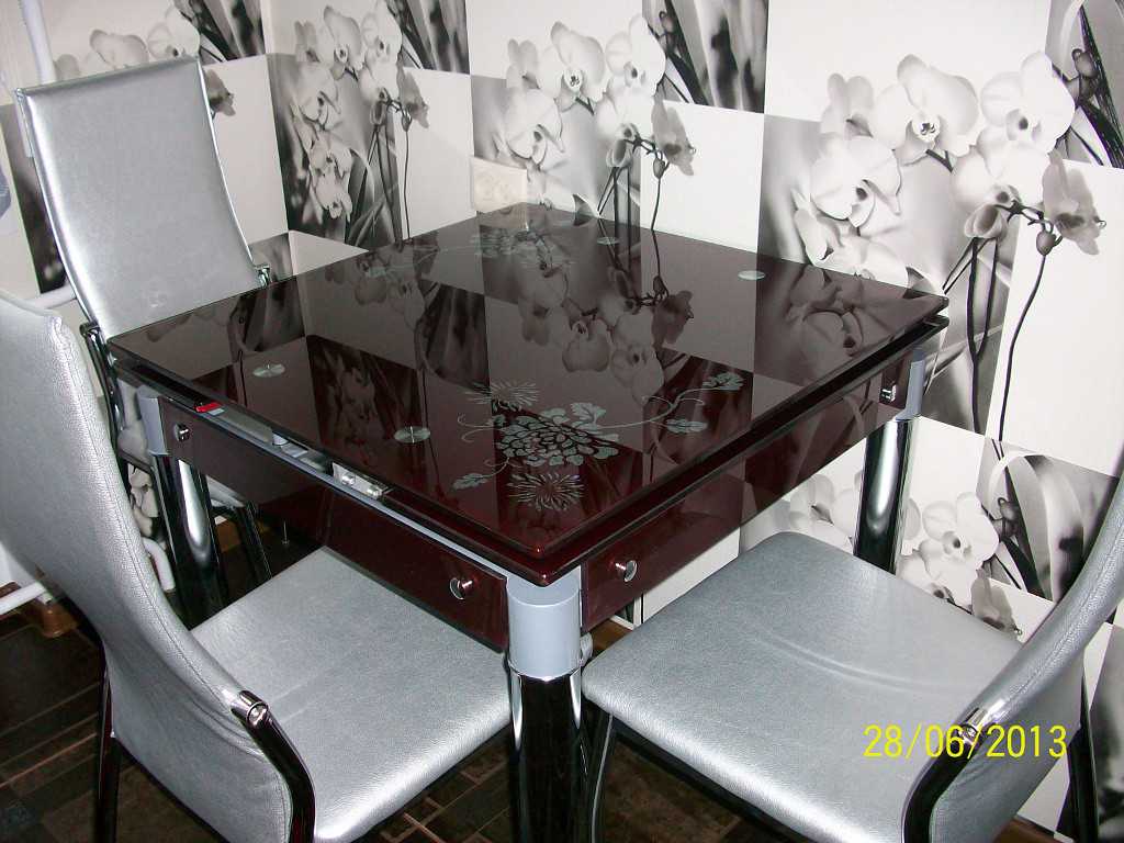Кроме того, если кухня небольшая, то следует использовать раздвижные конструкции либо столы-трансформеры со столешницей из стекла. Такие складные столы в сложенном виде занимают места не больше, чем журнальный столик, а при необходимости легко меняют высоту, превращаясь в полноценную обеденную конструкцию.