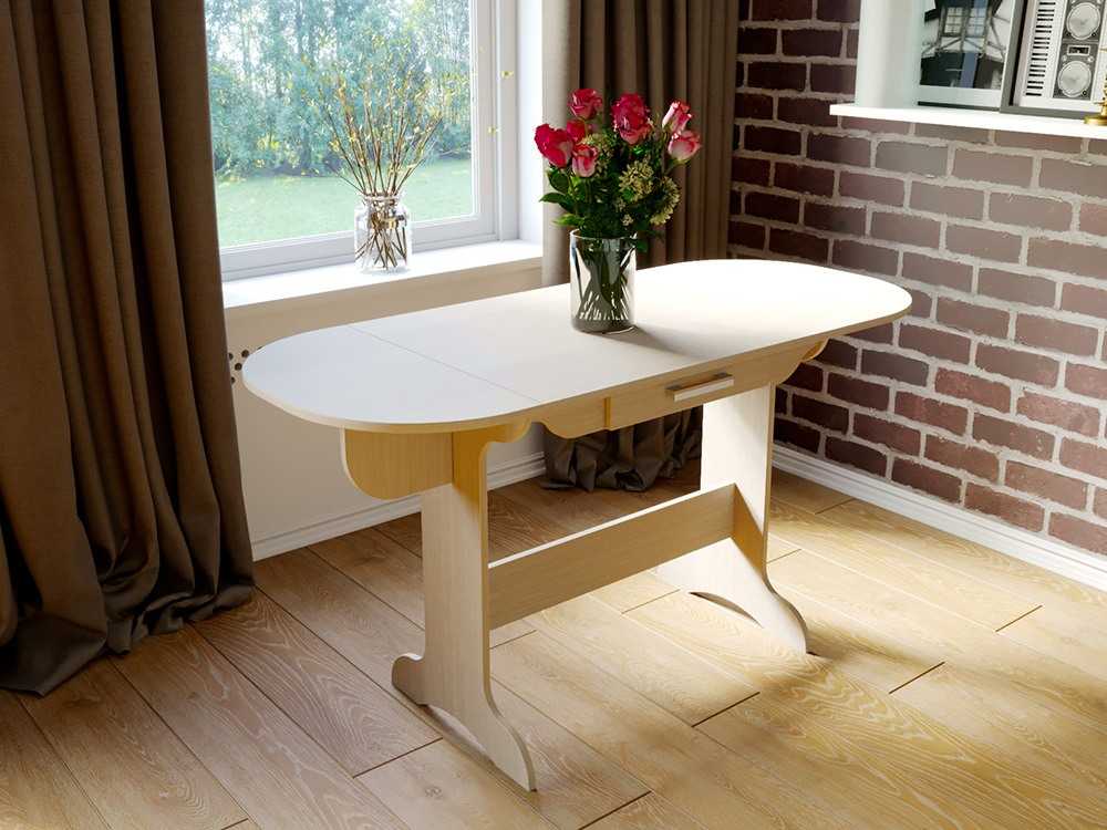 Стол-трансформер — главная особенность данной модели заключается в том, что ее можно увеличивать не только в длину, но и в ширину, а также в высоту. При необходимости, стол превращается в компактное изделие, способное с легкостью поместиться в кухне даже самых скромных размеров.