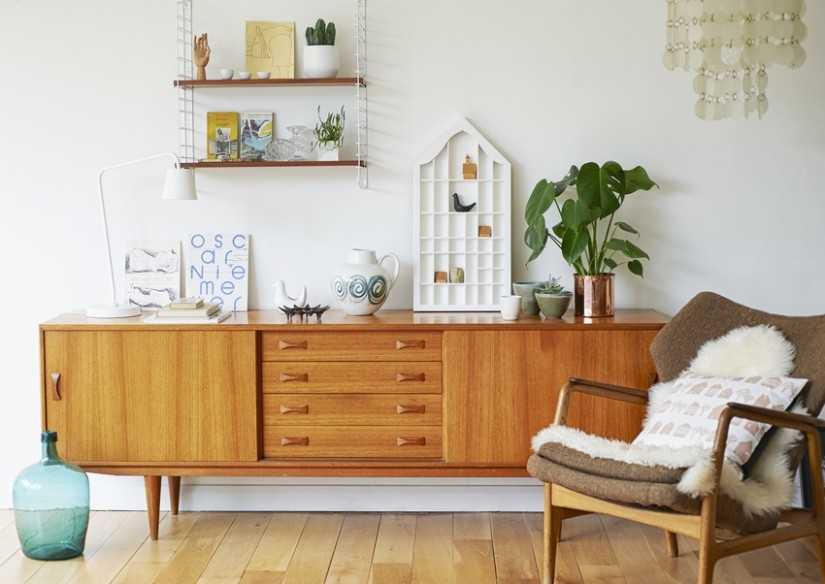 - Корпусная мебель. Представляет собой гарнитур, в который входит несколько деталей: комод, шкаф, письменный стол и т. д. Удобство в том, что некоторые части можно при необходимости поменять — например, вместо тумбочки поставить журнальный стол. Хотя основная мебель остаётся неизменной, интерьер легко обновить, используя осветительные приборы, цветы и разнообразные аксессуары.