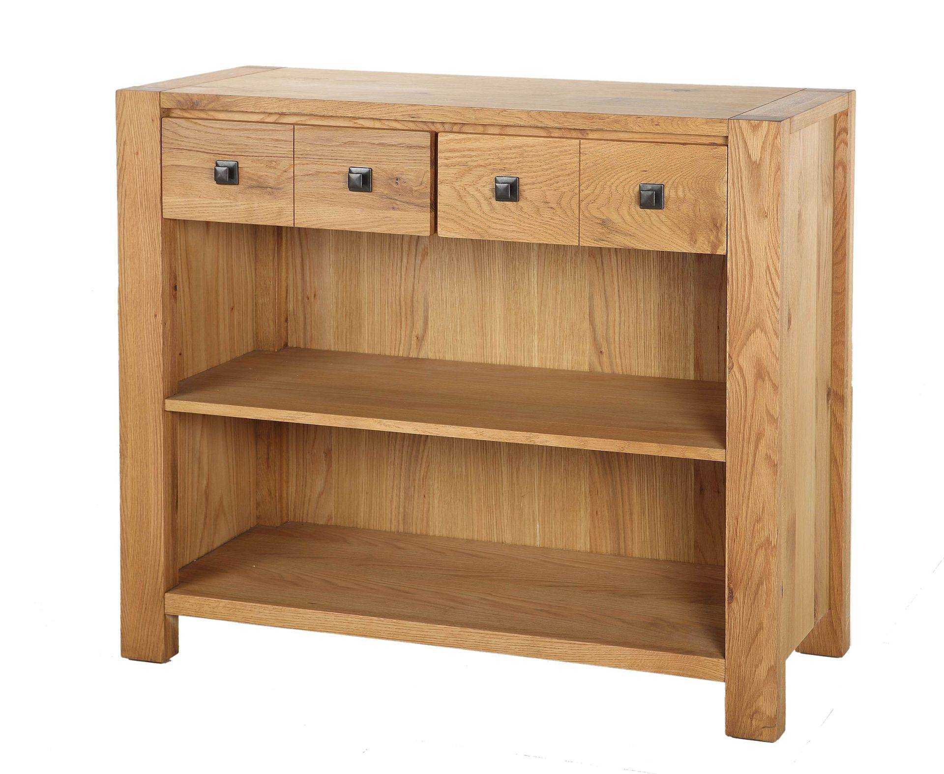 Изделие состоит из трех секций. Центральная оборудована выдвижными ящиками, а боковые распашными дверцами.