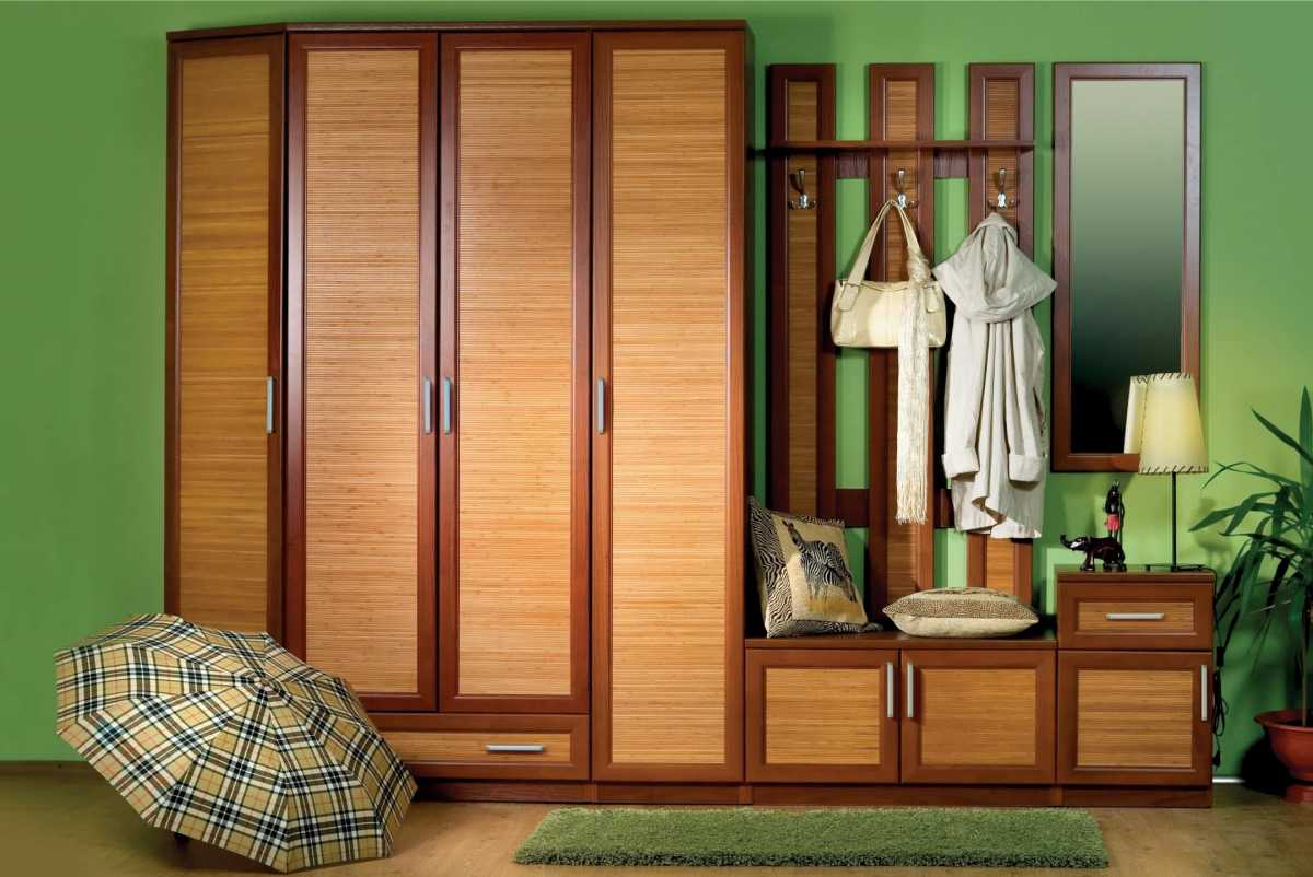 Большинство шкафов изготавливаются из комбинированных материалов: деревянный каркас с дверцами из бамбука. Створки могут быть на петлях либо с роликами. По этому принципу выделяют 2 разновидности шкафов: