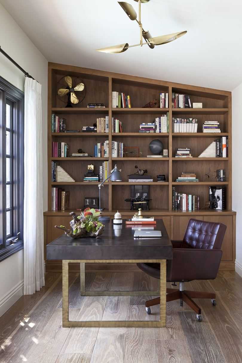 В рабочем кабинете ставят мебель в цвет рабочего стола и располагают стеллажи на расстоянии вытянутой руки, чтобы не отвлекаться от работы.