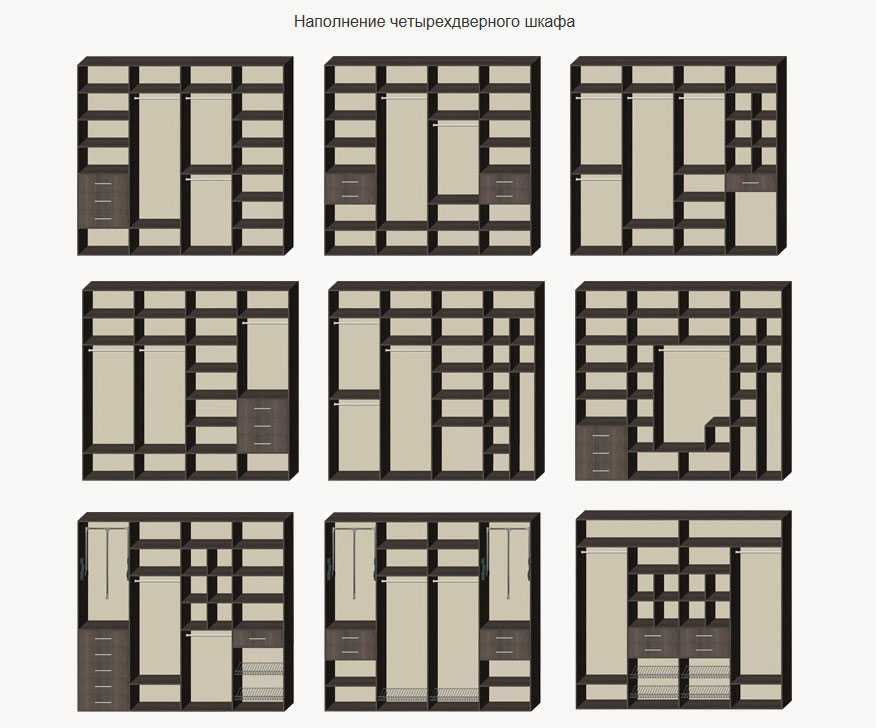 При выборе шкафа будущий владелец должен понять, для каких целей будет использована конструкция. Колоссальное различие наблюдается в наполнении шкафов для прихожей, спальной комнаты, поэтому необходимо предусмотреть все нюансы в определенном порядке.