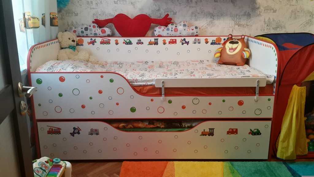А также модели с выдвижным ящиком, куда можно сложить игрушки или постельное белье.