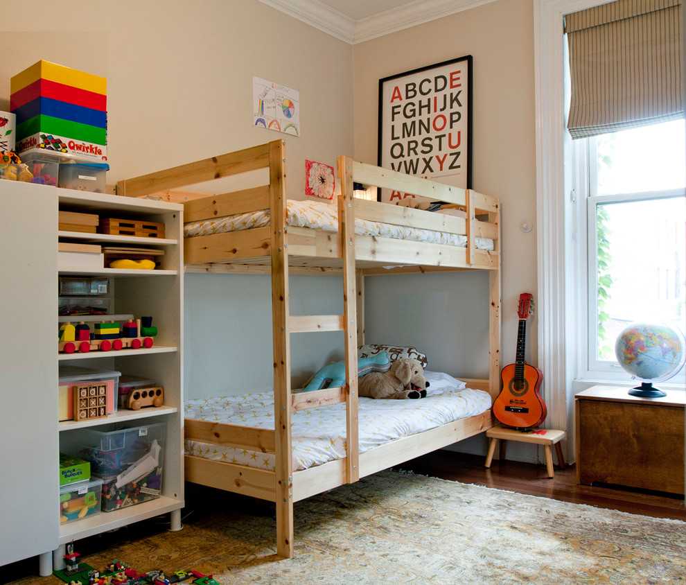 3. Экономия пространства является основополагающим фактором. Поэтому стоит учесть все необходимые параметры спального места. Кстати, двухэтажные кровати необходимо выбирать, учитывая возраст и рост детей. Чтобы определить оптимальную длину спального места, нужно к росту ребенка прибавить 30 сантиметров.