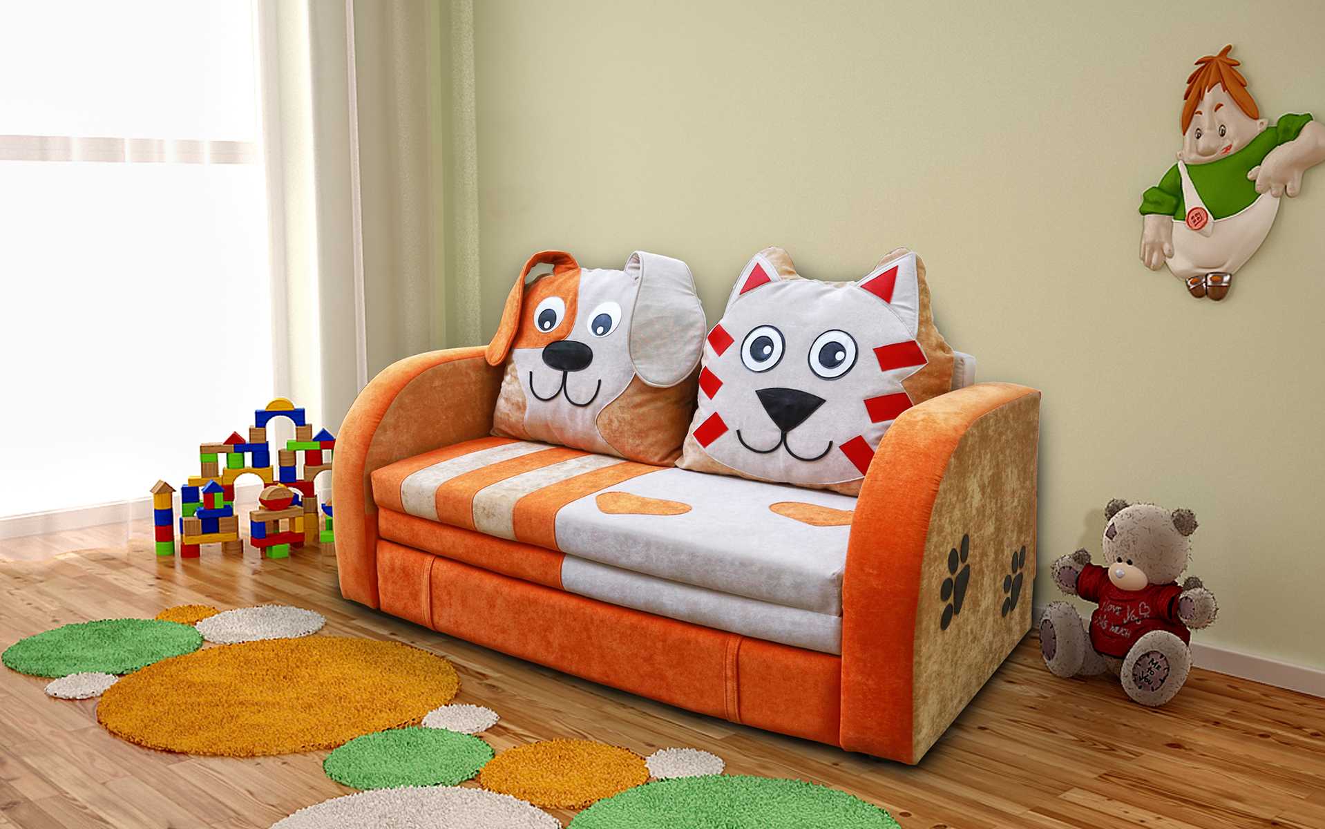 Дизайн. Как известно, детям нравятся яркие краски и герои мультипликационных фильмов. В любом случае маленькому хозяину очень понравится участвовать в процессе подбора дивана для своей комнаты.