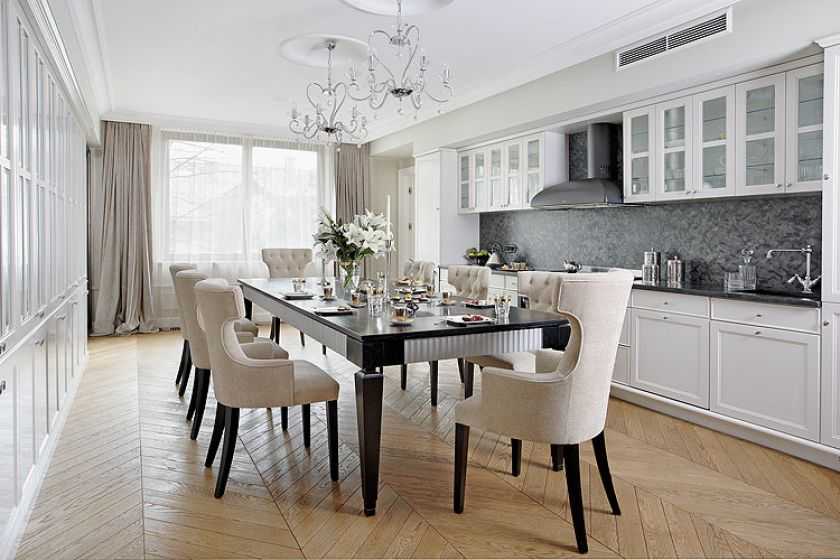 В большинстве квартир, кроме кухни, есть ещё и гостиная (её также можно назвать залом или столовой). На кухню, соответственно, приобретают кухонную мебель, а в гостиную — обеденная.
