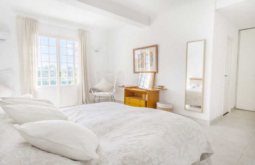 Для спальни белый цвет является универсальным. Вообще, для интерьера комнаты в стиле прованс он может стать основным и сочетаться с различными пастельными оттенками. Более романтичный и нежный интерьер получится при использовании лавандового или розового, а серый и голубой создадут более нейтральную атмосферу. На светлом фоне хорошо будет смотреться даже белая мебель из дерева, текстура которого не полностью скрыта краской.