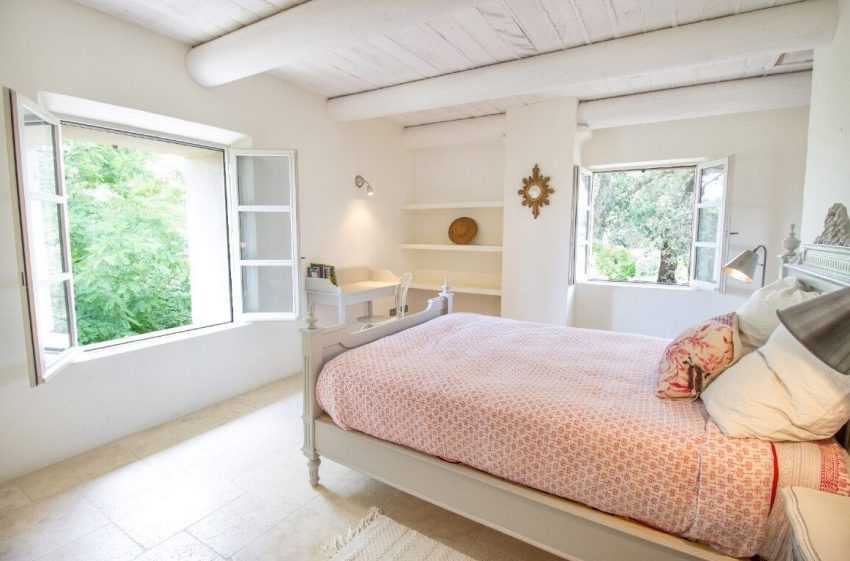 Каменная облицовка стен в спальне не только не покажется грубой — наоборот, натуральный камень свидетельствует о простоте, наигранной грубости и… надёжности прованского интерьера