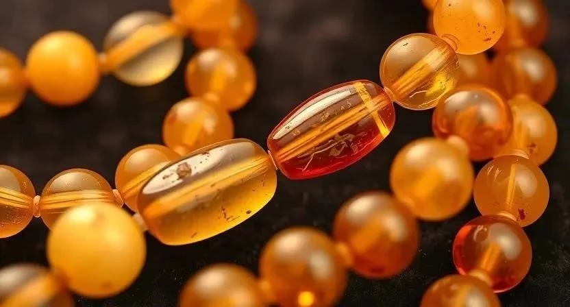 - Янтарные бусы: теплый, солнечный цвет и природная красота.