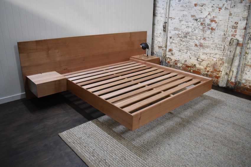 - деревянные – большая часть парящих кроватей выполнена из массива дерева (вишня, орех, дуб, сосна и прочее). Соответственно и стоимость таких моделей высока. Более доступная им альтернатива – это спальное ложе с каркасом из ЛДСП и МДФ. Основное достоинство деревянных изделий – это высокая прочность. Максимальная нагрузка, которую они способны выдержать, составляет 100 и более килограмм. Также такие кровати имеют эстетически привлекательный внешний вид и являются экологически чистыми и безопасными.