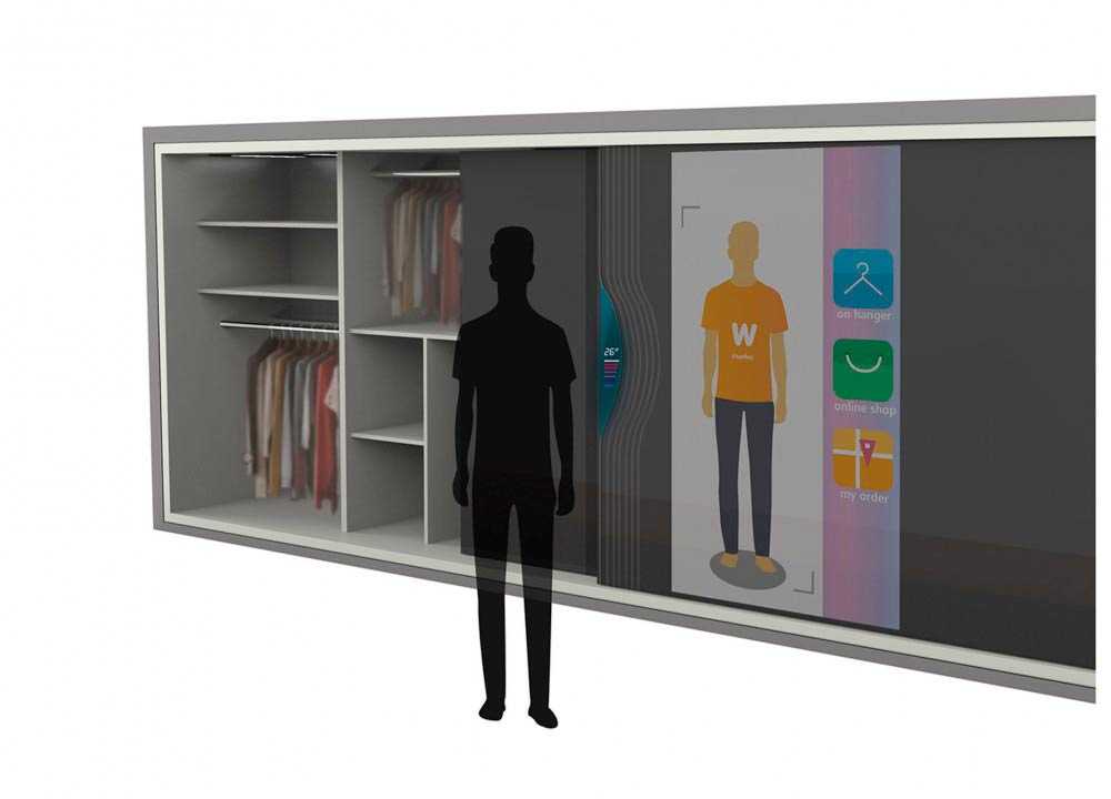 Умный шкаф для одежды снаружи похож на что-то среднее между современным высокотехнологичным холодильником с сенсорной панелью и узким пеналом размером 180 х 50 см. Дисплей с иконками и различными уведомлениями (о температуре и процессе отпаривания) интуитивно очень простой. Он не будет занимать много места и элегантно впишется в каждый интерьер, будь то маленький уголок в офисе или роскошная гардеробная в итальянском стиле. Дверцу можно перевесить, чтобы она могла открываться в нужную сторону.