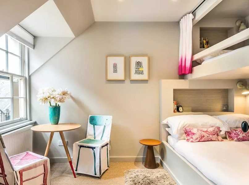 Комната для двух человек должна, прежде всего, располагать площадью. Здесь должны свободно размещаться два спальных места и, как минимум, одно рабочее место для выполнения домашних заданий. Для экономии места отлично подойдет двухуровневая кровать. Выбирайте модель с прочным каркасом, способную выдержать большие нагрузки.