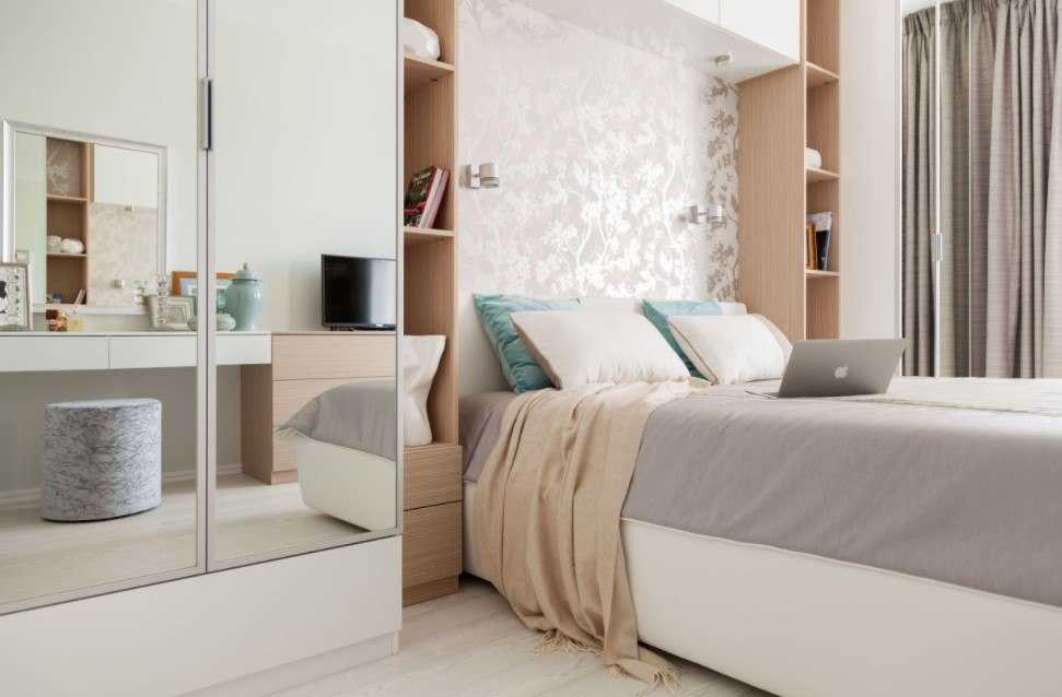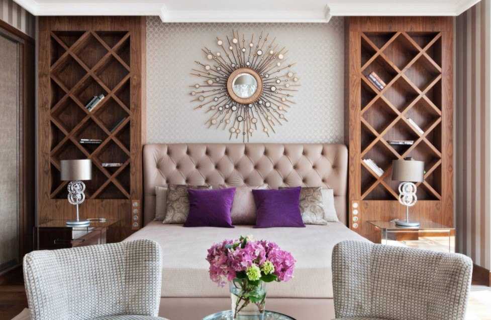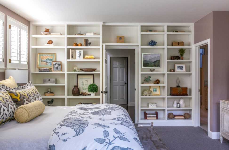 Всевозможные полочные конструкции в интерьере спальни не только преображают общую картину и служат прекрасными помощниками в организации порядка. Это универсальное решение для гармоничной планировки помещений под спальни любых размеров. Благодаря полкам можно создать оригинальный акцент и разгрузить общую обстановку от скопления и нагромождения различных предметов мебели.