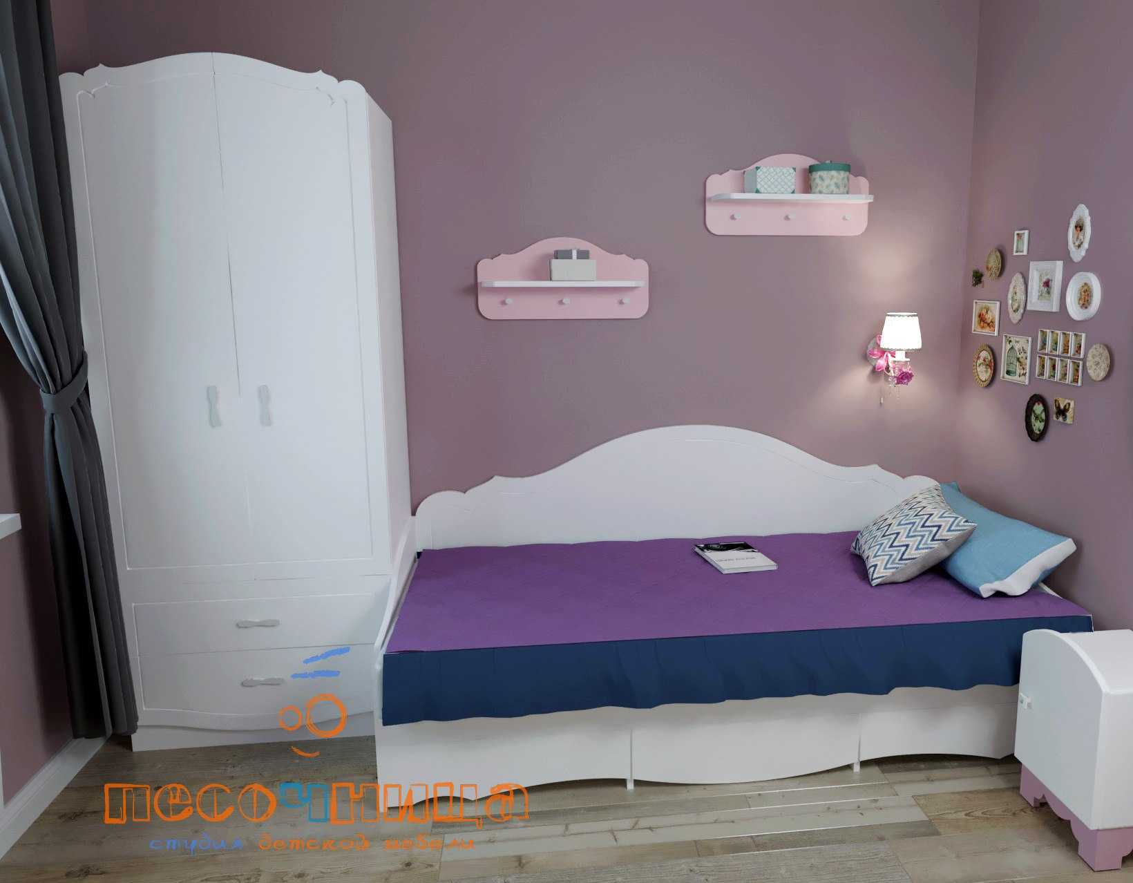 - Можно подобрать стеллаж, шкаф или кровать в таком же цвете и дизайне, поскольку в магазинах подвесные полки – это, как правило, отдельный элемент комплекта мебели.