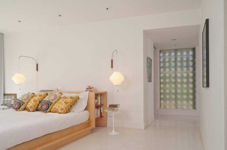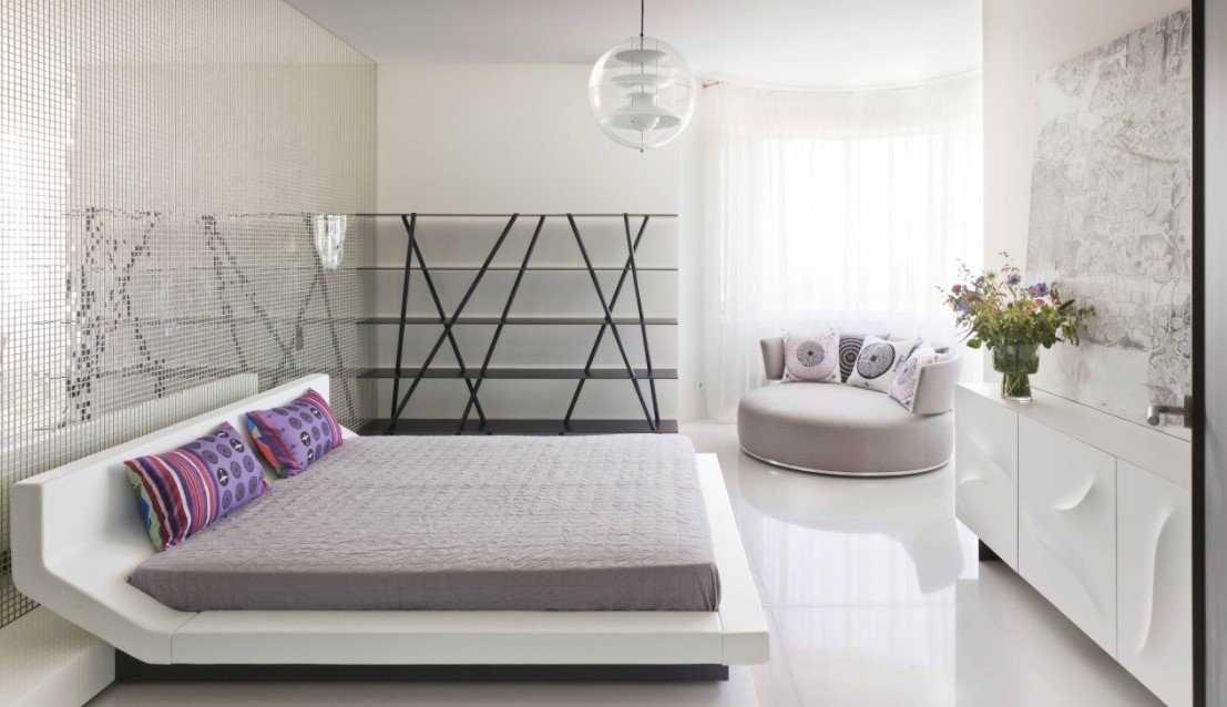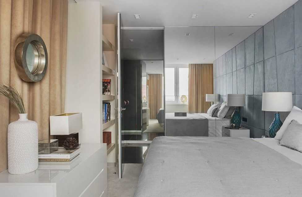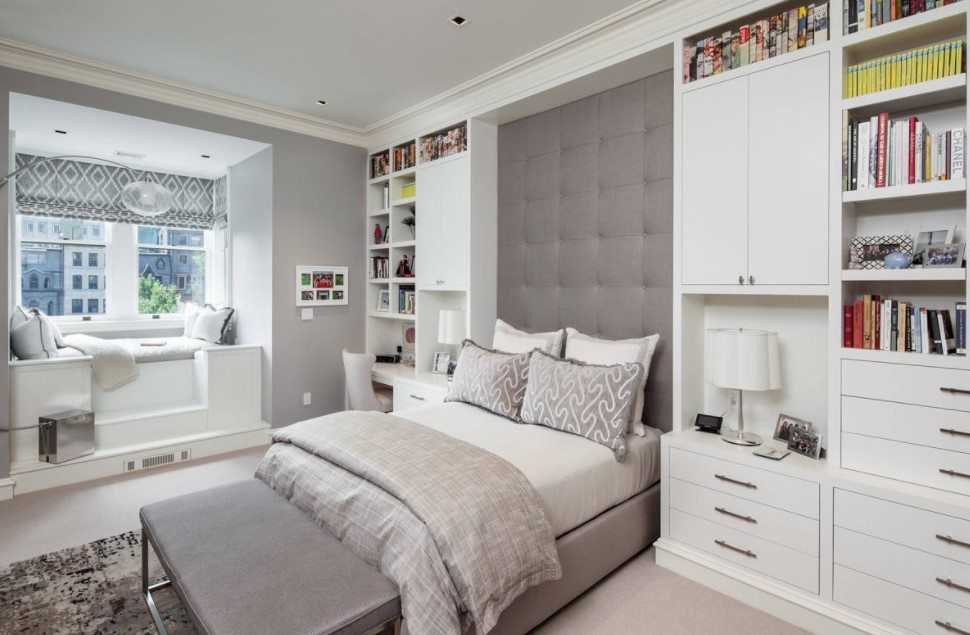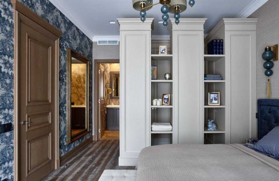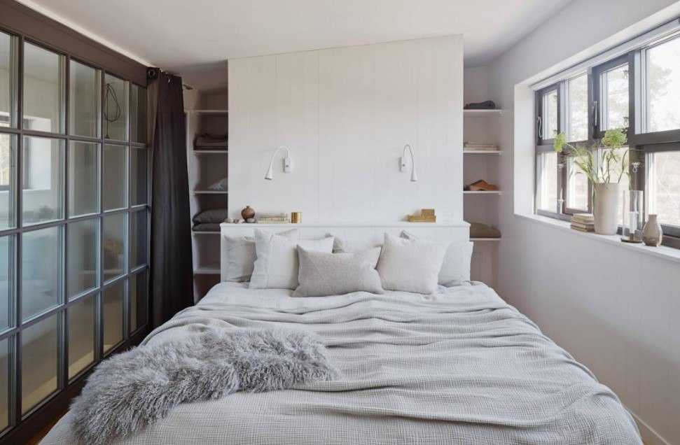 Идея размещения полок непосредственно над кроватью в спальне нравится не всем. Однако такое решение считается невероятно удобным для помещений небольшого размера и полки при этом не обязательно крепить к стенам. Это могут быть напольные конструкции, имеющие своё продолжение по обеим сторонам кровати или встроенные вариации, которые смотрятся особенно привлекательно. Такие полочки используются в большинстве случаев для хранения различных мелочей регулярного использования, книг и всевозможного декора. Для более гармоничного вида и удобства, встроенные полки над кроватью оснащаются подсветкой.