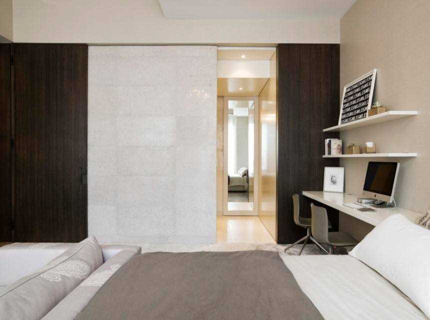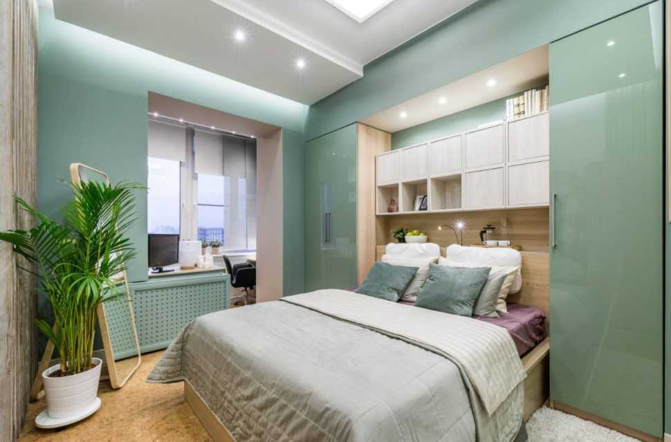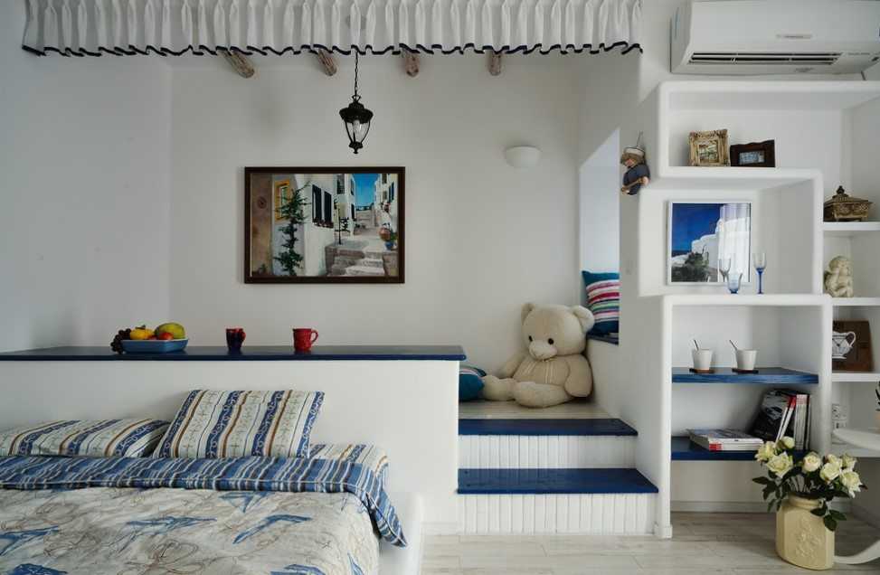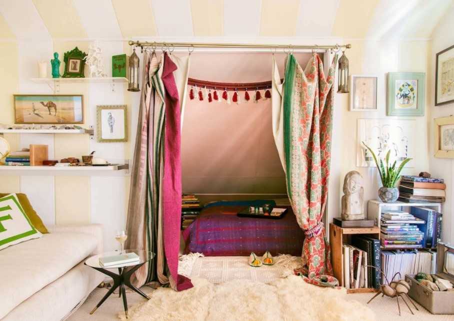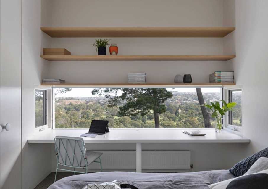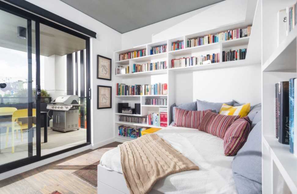 Дизайнеры утверждают, что с помощью простых полок можно разделить свою спальню на несколько удобных зон. Повесив полку между кроватью и рабочим столом, вы поделите комнату на рабочую зону и место для отдыха.