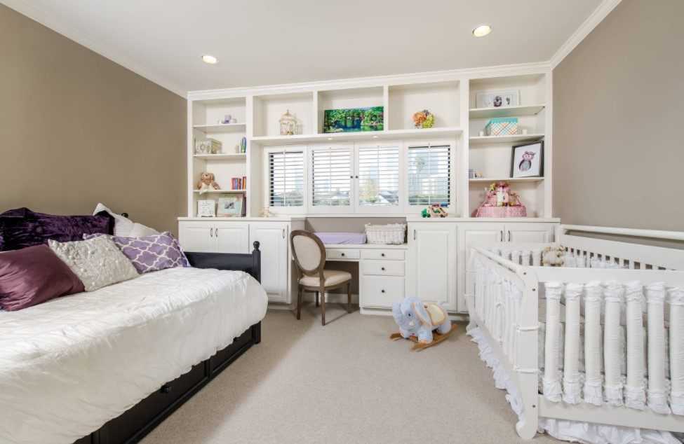 Настенные полки для комнаты маленького ребенка должны быть размещены не очень высоко, а так, чтобы малыш мог дотянуться до них с невысокого стула или своей кровати. Если на полках есть ящики, то они должны открываться без усилий, а дверцы должны быть легкими, чтобы ребенок не прищемил пальцы.