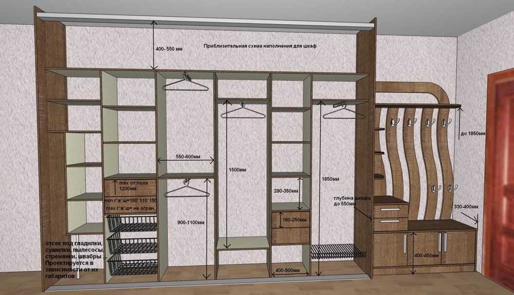 При желании можно также разместить полку в гардеробной зоне. Если у вас совсем маленькая комната, то этажерка в несколько полок заменит громоздкий шкаф или комод. Разместите на стене несколько небольших полок, и вы сможете хранить там самые разные вещи: необходимую одежду, постельные принадлежности.