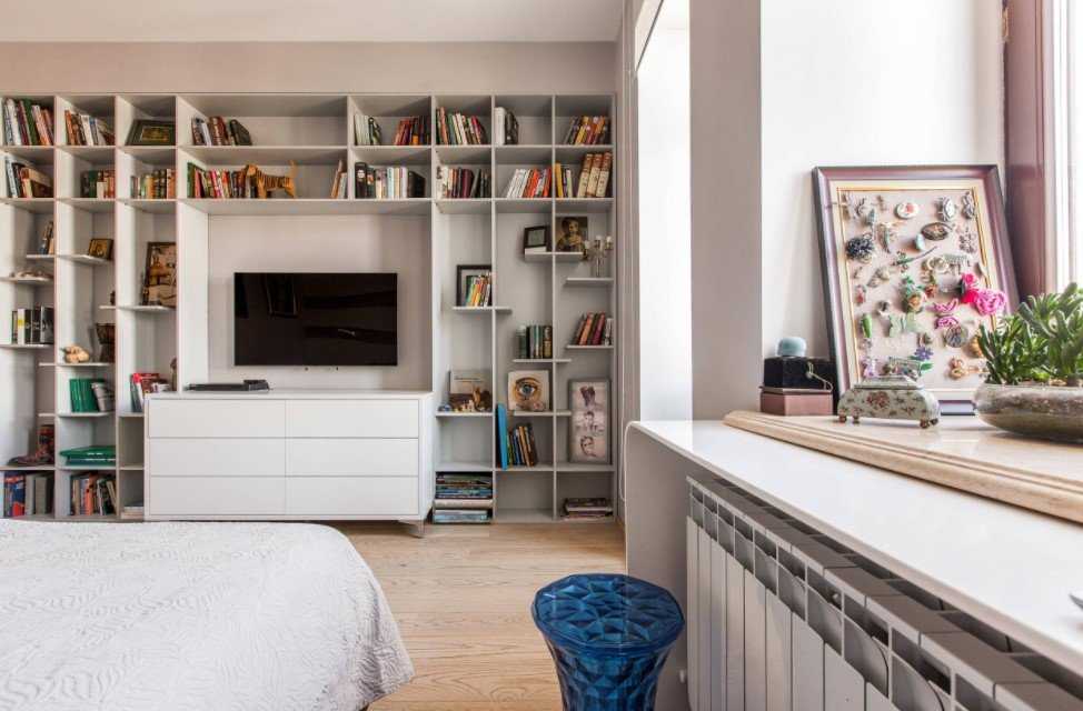 Современная библиотека должна соответствовать строгим принципам – не только хранить литературный запас, но и быть достойным украшением гостиной. Освежить интерьер могут модули разные по величине и ориентации