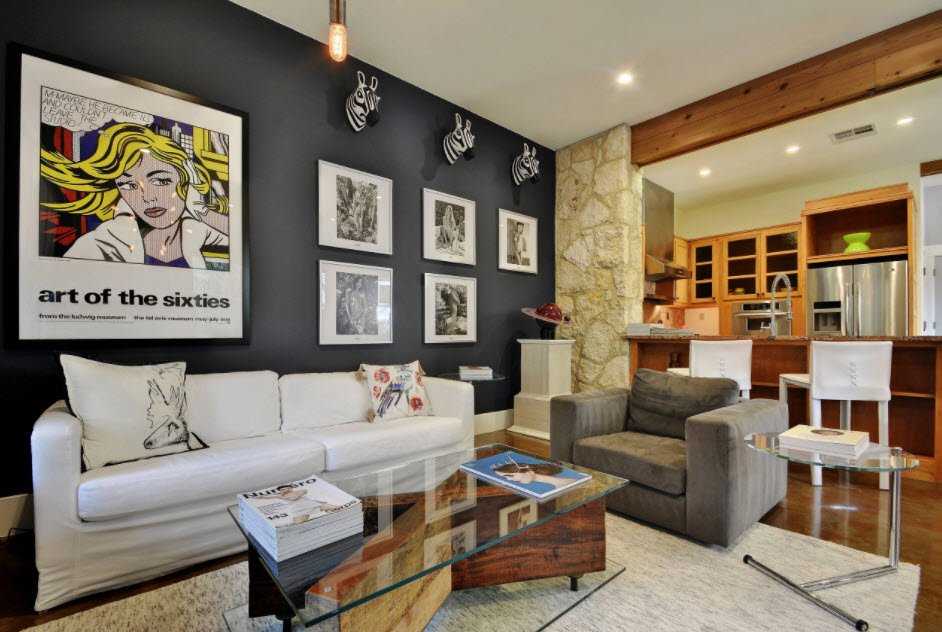 Современная техника в виде больших тв-экранов, музыкальных центров, домашних кинотеатров особенно приветствуется в индустриальном направлении. Для того, чтобы создать в помещении лофта некую динамику, стеновую поверхность с телевизором, декорируют камнем, кирпичом, деревом или обоями, имитирующими натуральные материалы.