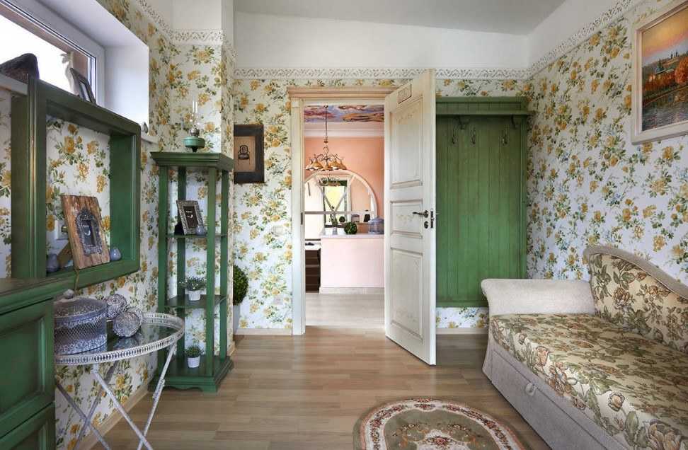 В винтажном стиле или интерьере прованс хорошо будет смотреться красивая полочка, декорированная цветастой тканью (или просто прикрытая полупрозрачными шторами из легкой ткани). Цвета в этом случае могут быть как пастельными, так и темными.