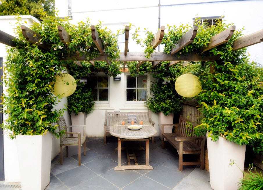 Фруктовые деревья – далеко не лучший вариант. Опадающие плоды деревьев будут портить внешний вид мебели, оставляя следы на светлой поверхности древесины.
