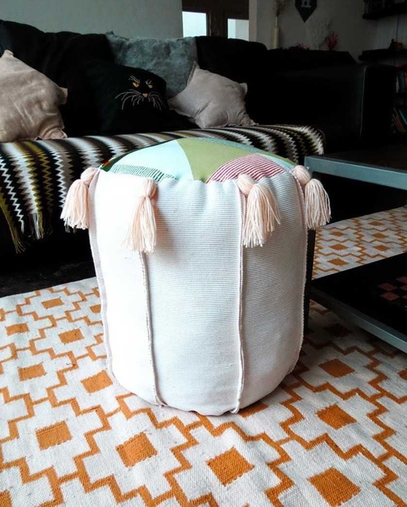 Такой пуфик легок в исполнении, мобильный и удобный в использовании. Его можно будет переносить с места на место без особого труда. Но для его изготовления понадобятся хоть какие-то навыки владения иголкой и ниткой.