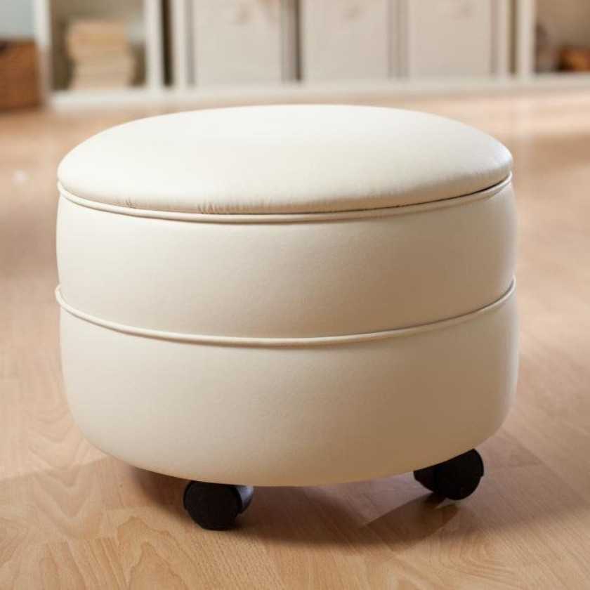 - У пуфа могут быть простые деревянные или металлические ножки, очень короткие. А иногда вместо ножек оборудована небольшая платформа или стоят колесики.