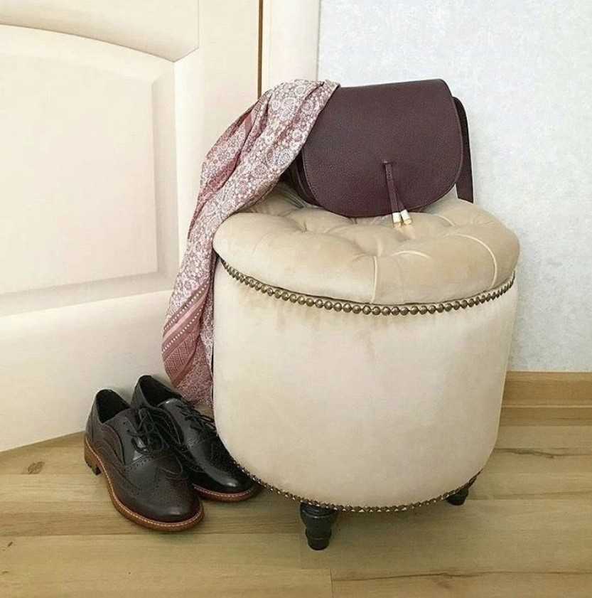 Приемы сборки и отделки своими руками пуфиков на жестком каркасе для прихожей
