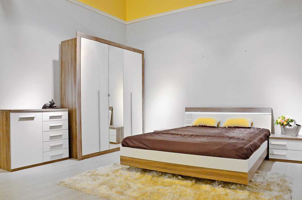 Это конструкция с раздвижными дверями-купе, которую можно вписать в любое место спальни. Плюсом данного изделия является его высота – от пола до потолка.