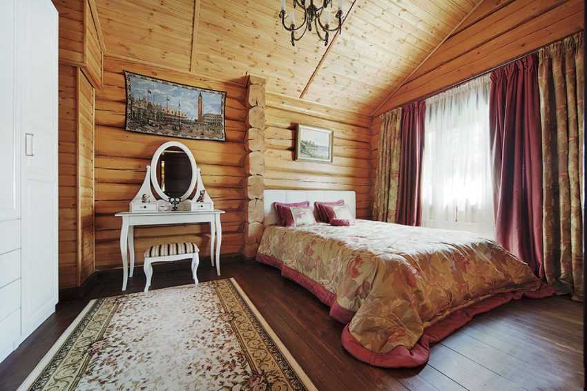 При отделке выбор стоит делать в пользу натуральных материалов. Пол можно застелить ламинатом или кафелем, а потолок выкрасить однотонной краской. Стены можно выполнить краской или обоями, желательно оставлять эти поверхности ровными и избегать текстур.