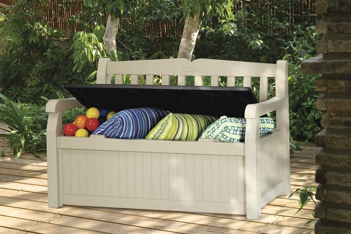 Встречаются наиболее функциональные и удобные в эксплуатации изделия с ящиками для хранения вещей. Они подойдут для загородного участка, дачи или огорода