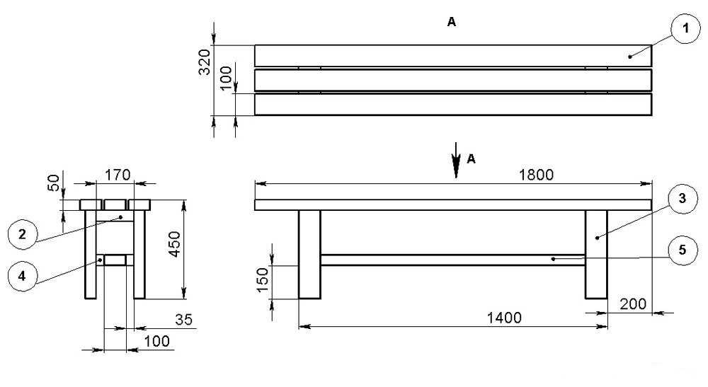 Если лавка будет выше 45 см, то с неё будут свисать ноги людей, которые на ней сидят. Если же данный параметр будет меньше 30 см, то колени придётся сгибать под острым углом, что плохо сказывается на кровообращении и приводит к неприятному ощущению в ногах.