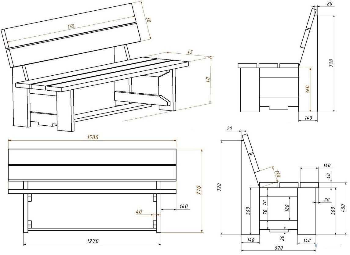 - угол между сиденьем и спинкой может составлять от 105 до 120 градусов, чтобы на скамейке было удобно сидеть;