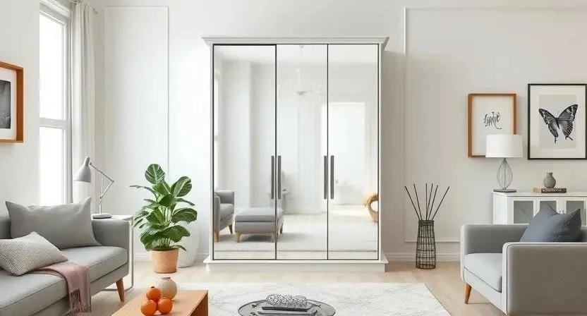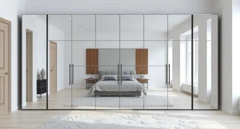 - Шкаф-купе с серебряными фасадами – оптимальный выбор для экономии места.