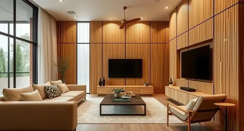 - Гостиная: Бамбуковые фасады станут ярким акцентом в интерьере.