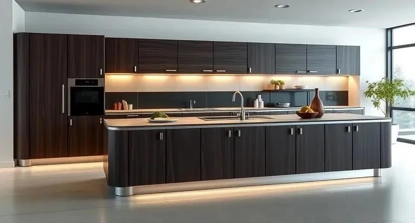 - Волна: Создает мягкий, плавный изгиб, придающий кухне ощущение легкости и воздушности.