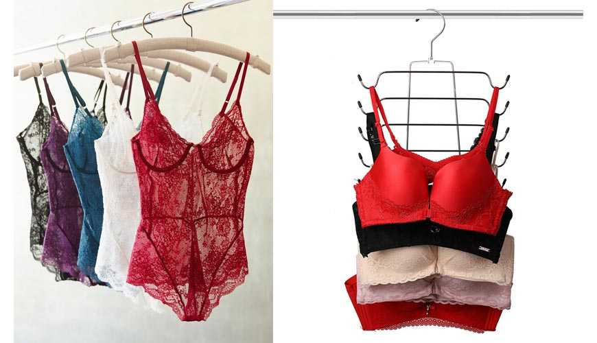 Лучше всего хранить лифчики на специальных вешалках. При таком способе не только сохраняется форма изделия, но также сокращается время её поиска. Помимо этого, не нужно перекладывать соседние вещи, чтобы достать нужный предмет, а потом возвращать на место.