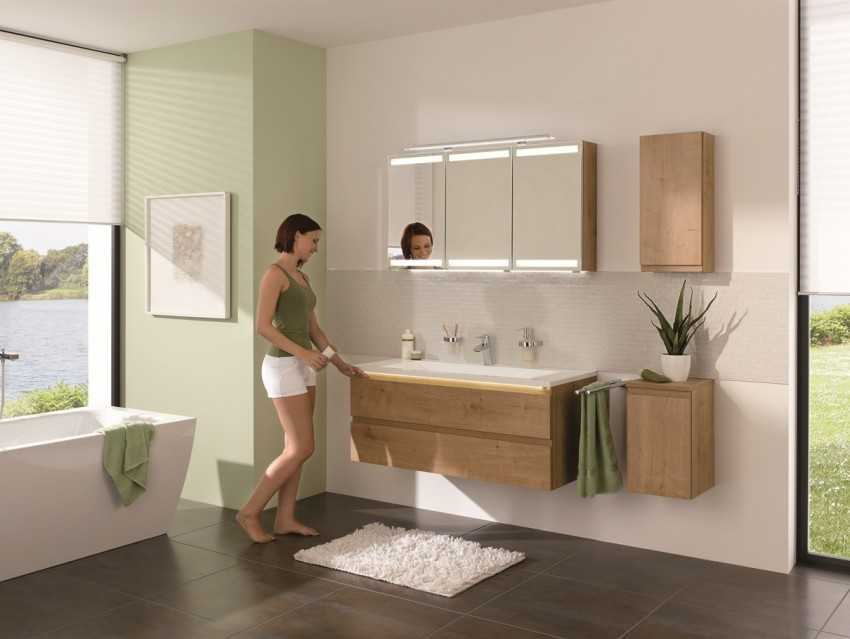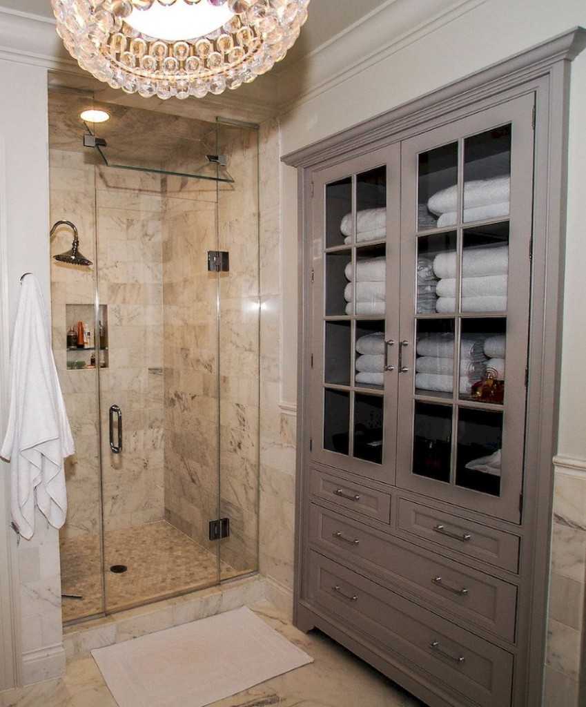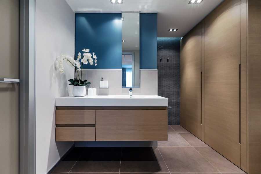 Самым современным решением станет встроенный шкаф в ванной. При отличной вместимости он позволяет сэкономить свободное место в помещении. Отдельных плюсов заслуживает красивый внешний вид и эстетичность встроенной мебели.