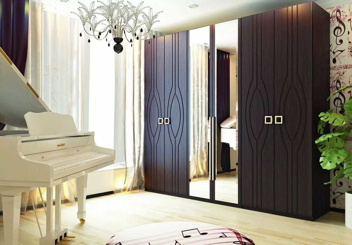 Разнообразие материалов и декора позволяет изготавливать шкафы венге самой разной стилистики.
