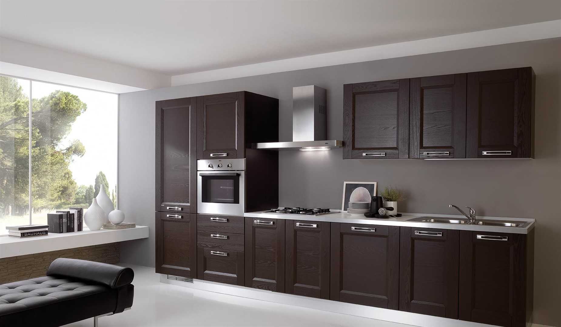 Насыщенный цвет венге выглядит несколько аристократически и хорошо подойдет для классического оформления кухни, главное, правильно подобрать предметы декора